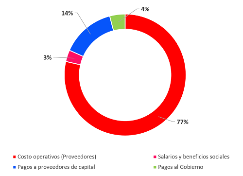 En 2020, el valor económico generado de Enel Américas fue de Mill US$12.656. En tanto, el valor económico distribuido fue de Mill US$12.533, el cual se distribuyó entre los grupos de interés de acuerdo con la siguiente proporción: