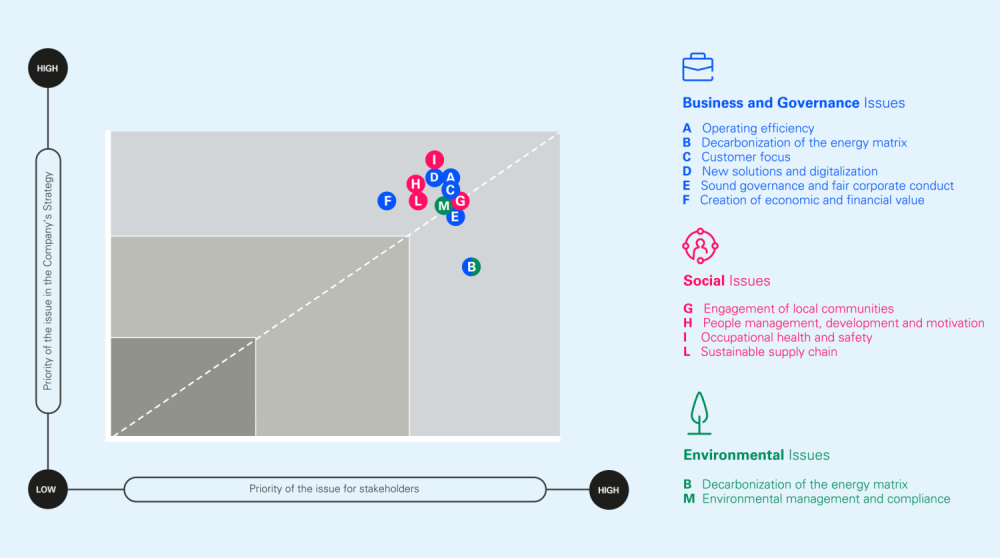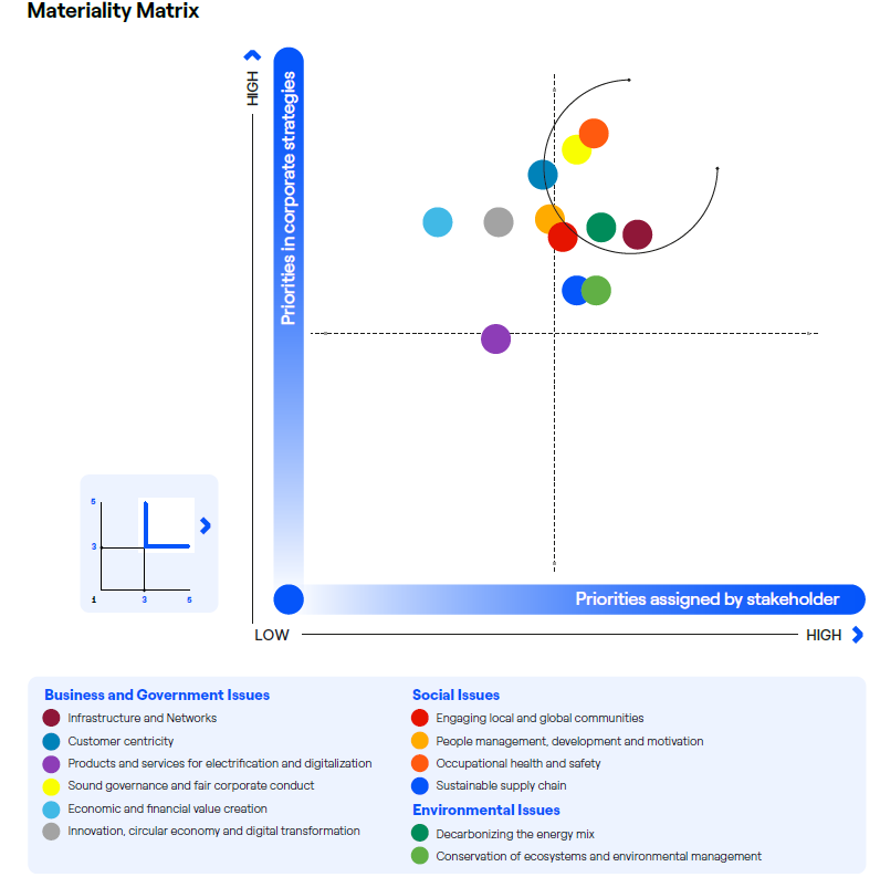 Infrastructure and grids: In line with our just energy transition, having a solid infrastructure capable of guaranteeing quality supply to inhabitants in the concession areas is of the utmost importance, and enables us to address the global trend of energy consumption electrification. Strengthening this infrastructure calls for adopting new technologies, robust processes and digitization operations companywide, thus improving electrification and, with it, supporting the energy transition and new energy uses. That is why we continuously roll out improvement plans involving grid maintenance and modernization to reduce the number and duration of service outages.