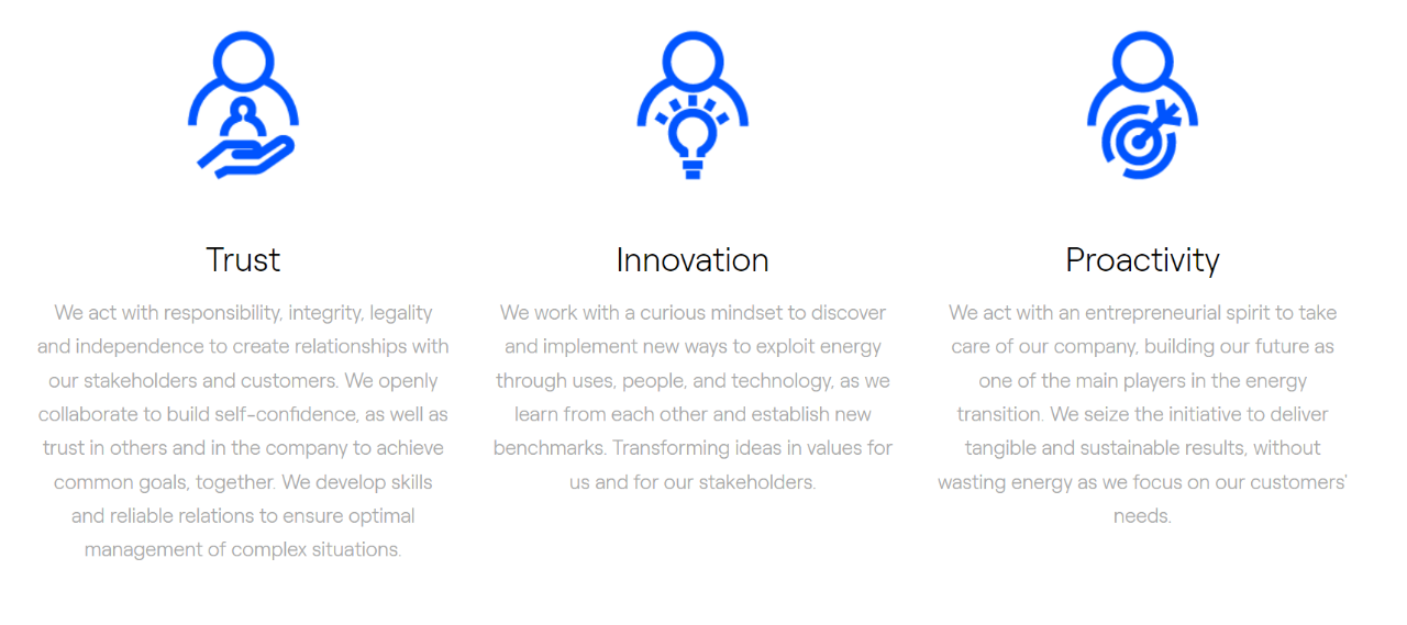 Now we are the dawn of energy, one that is exciting and open to participation, where everyone is connected and has the possibility to do their part in tackling the world's biggest challenges. As a global leader in the energy sector, we´re driving the energy transition from fossil fuels to renewables. It's a just energy transition that is accessible to all.