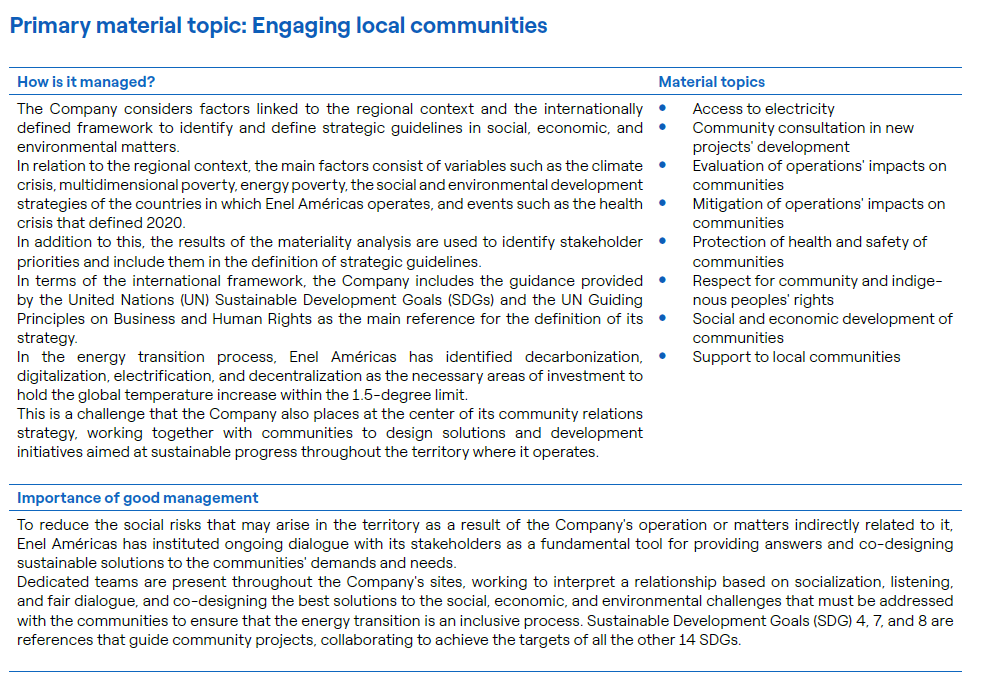 Strengthening of the Creating Shared Value (CSV) Model, with the development of 319 applications for the design of various social and environmental initiatives, carried out throughout the value chain of Enel Américas' different business lines.
