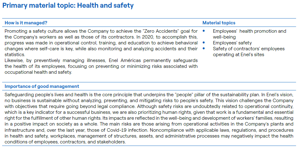 For more information, review the Enel Americas 2020 Sustainability Report.