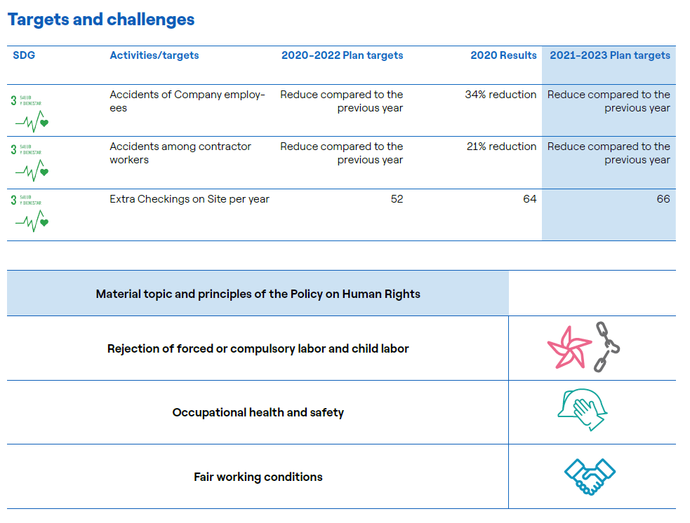 Inclusion of sustainability K factors in the supplier selection process. 441 KPIs incorporated in 2020 for 536 contracts, with an amount of US$ 1.037 billion, equivalent to 59% of the contracted amount).