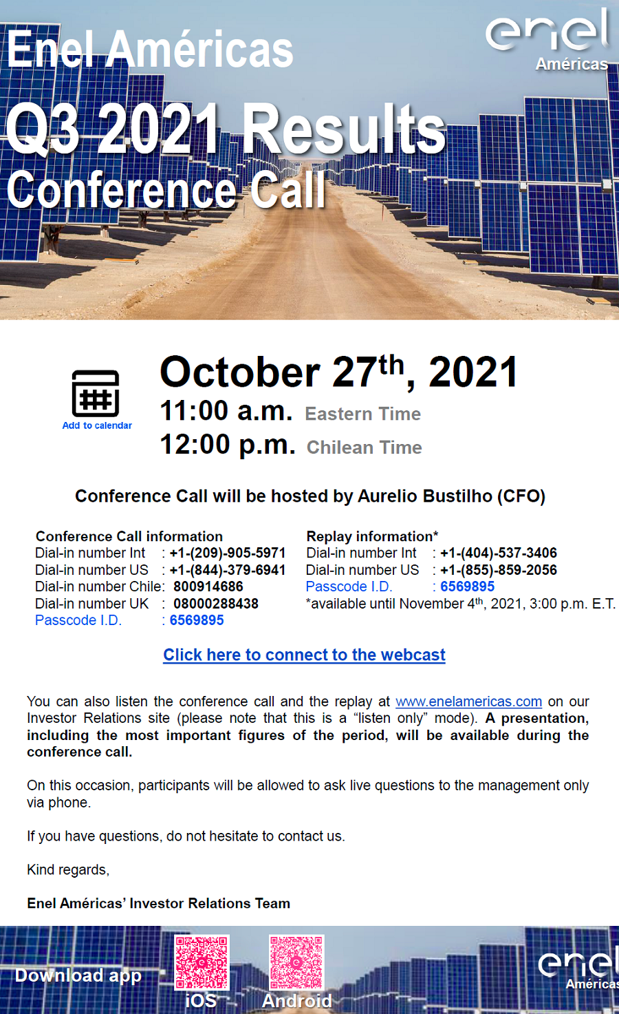 Enel Américas - Q3 2021 Results Conference Call
