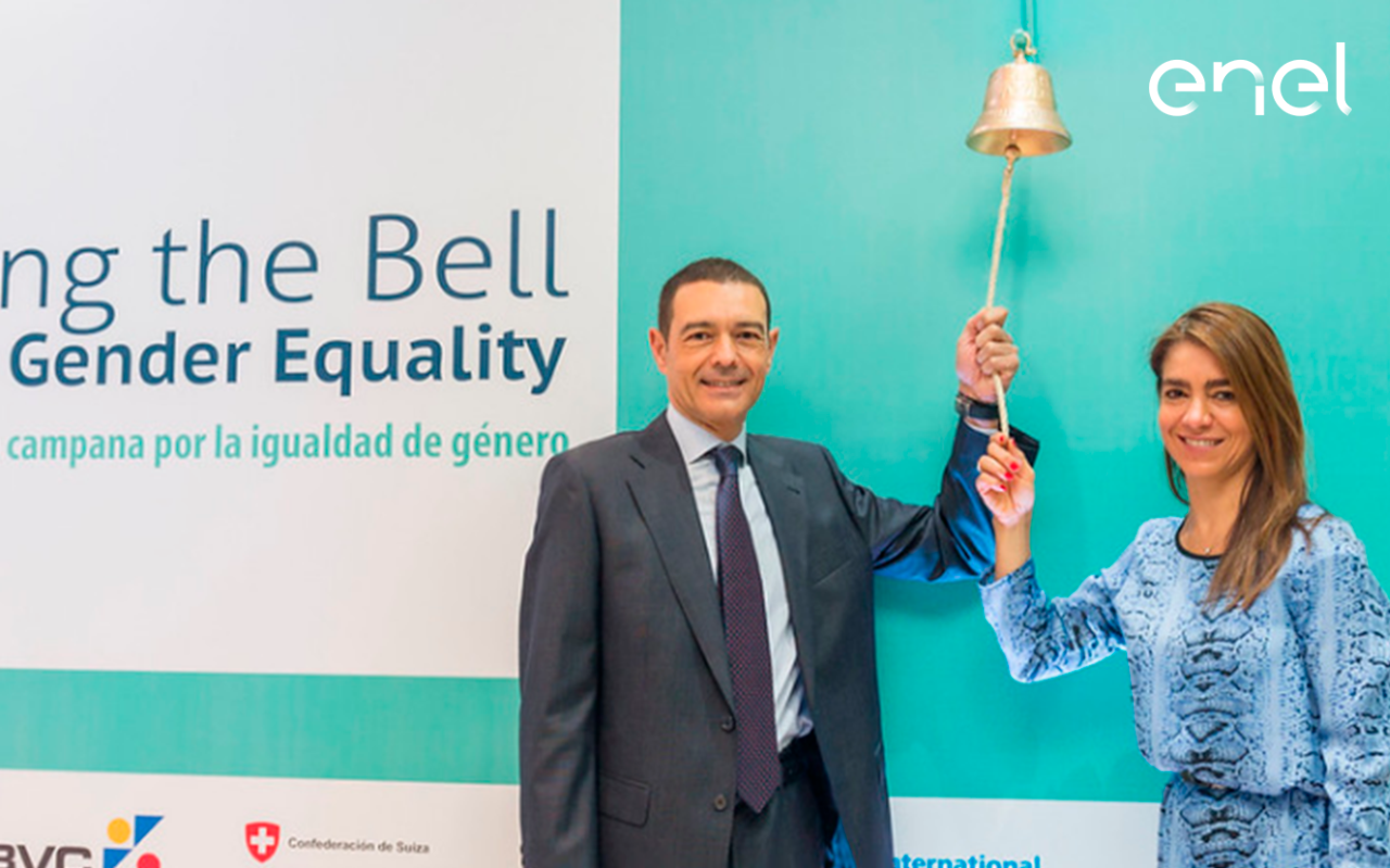 At Enel Americas we understand our job as adding value with inclusion, equality, and people’s merit. That is why, ever since more than five years ago, our affiliates in Colombia, Codensa, and Emgesa have been implementing initiatives aimed at promoting spaces for equality. On this occasion, the initiative “Tolling the bells for gender equality” was the case, which took place at the Colombia Stock Exchange.
