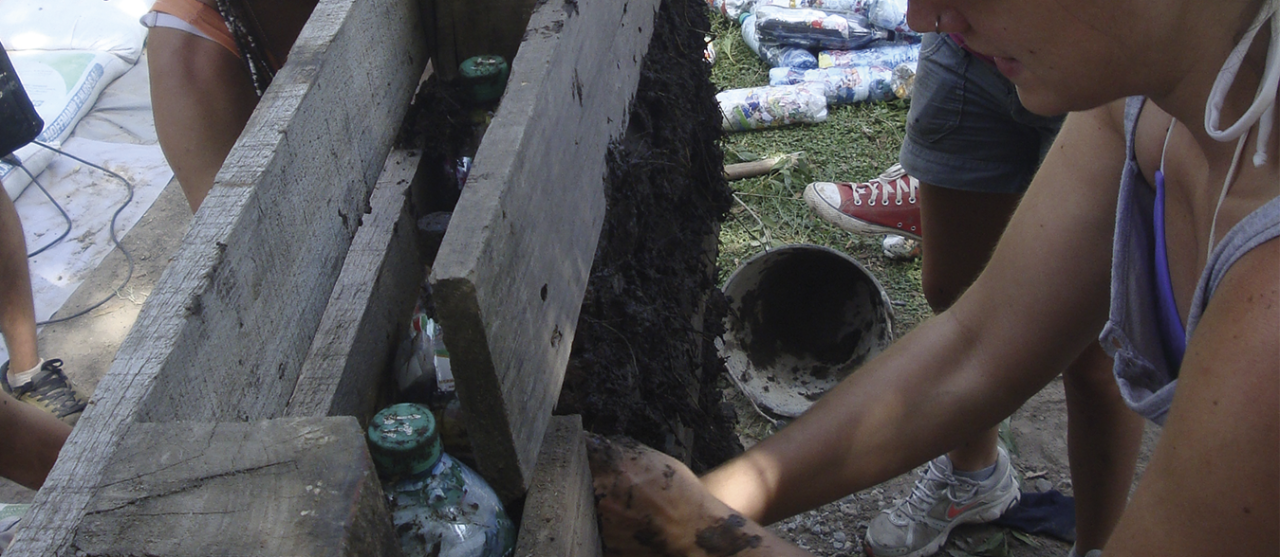 The objective of this school hall – workshop is to offer free lectures on sustainable construction, recycling and composting. The activity is 100% sustainable, since company leftover materials and ecological bricks are used in it.