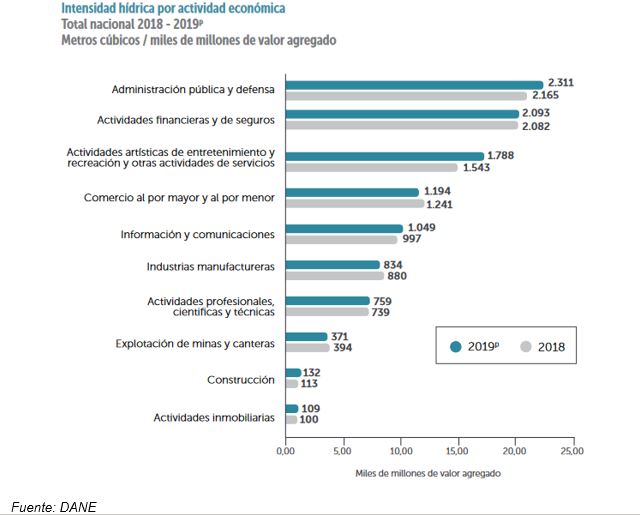 Por su parte, Colombia, en el 2018, lanzó su Sistema de Información de Economía Circular como parte integral de su estrategia, alimentado por la información estadística disponible. El cuarto reporte publicado en diciembre 2021 por el DANE (Departamento Administrativo Nacional De Estadística) consiste en un conjunto de 35 indicadores en 4 ámbitos: demanda de activos ambientales y servicios ecosistémicos; conservación o pérdida de valor de los materiales en el sistema productivo; presión en los ecosistemas por la disposición de residuos; factores que facilitan la Economía Circular. En el primer ámbito se destaca, por ejemplo, el indicador Intensidad hídrica por actividad económica, siendo la actividad Administración pública y defensa la más intensiva del país, con 2311 metros cúbicos de agua por cada mil millones de pesos generados de valor agregado.
