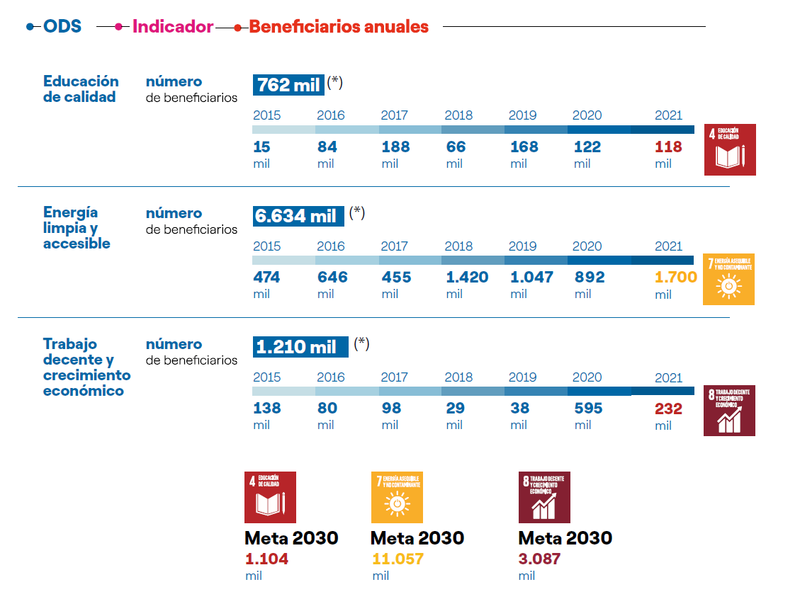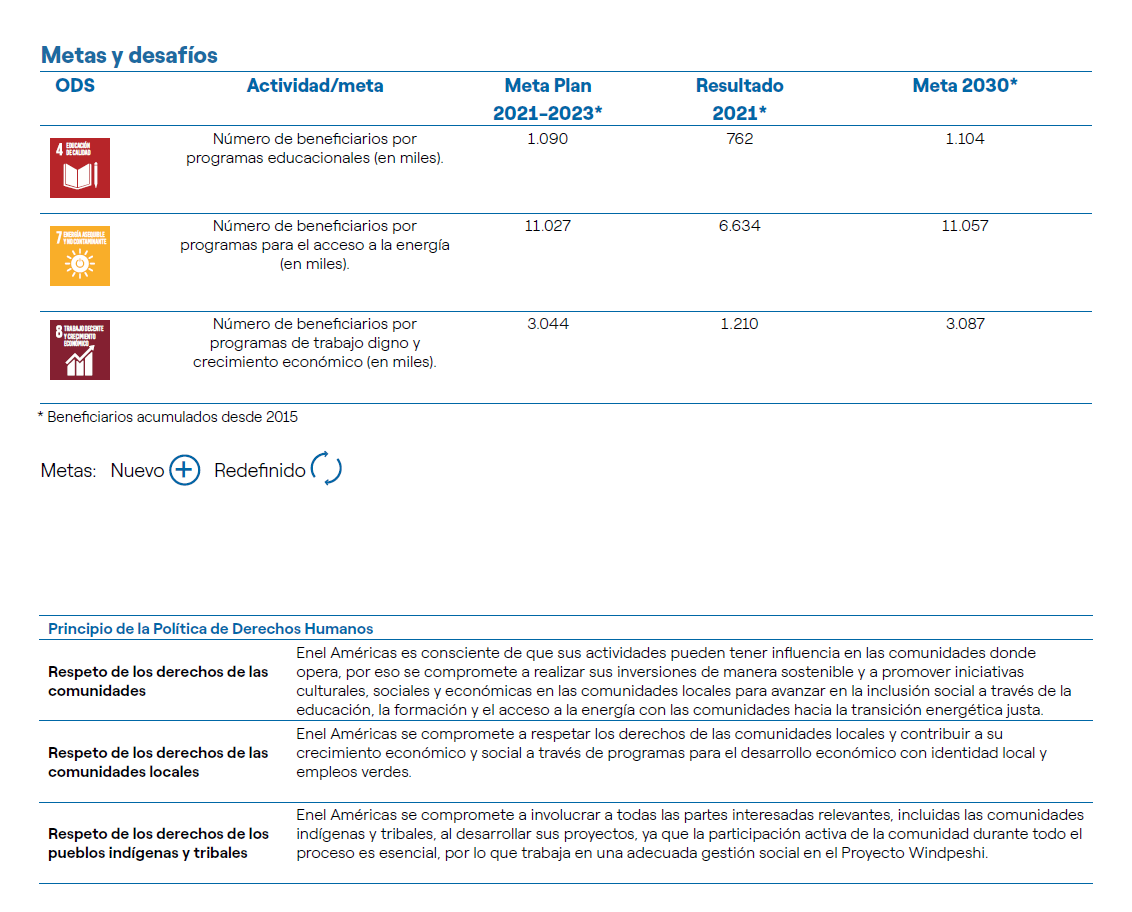 A continuación, se presenta el avance que Enel Américas tuvo en 2021 con respecto a las personas a las cuales se contribuye, en los tres ODS que guían su gestión en sostenibilidad.