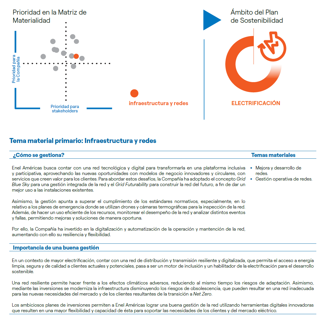 Enel Américas aplica planes de mejora constantemente, en sus áreas de mantenimiento y modernización de la red, las que han reducido el número y duración de las interrupciones del servicio. De esta forma, se logra monitorear en línea la infraestructura, garantizando una intervención rápida y oportuna de las averías.