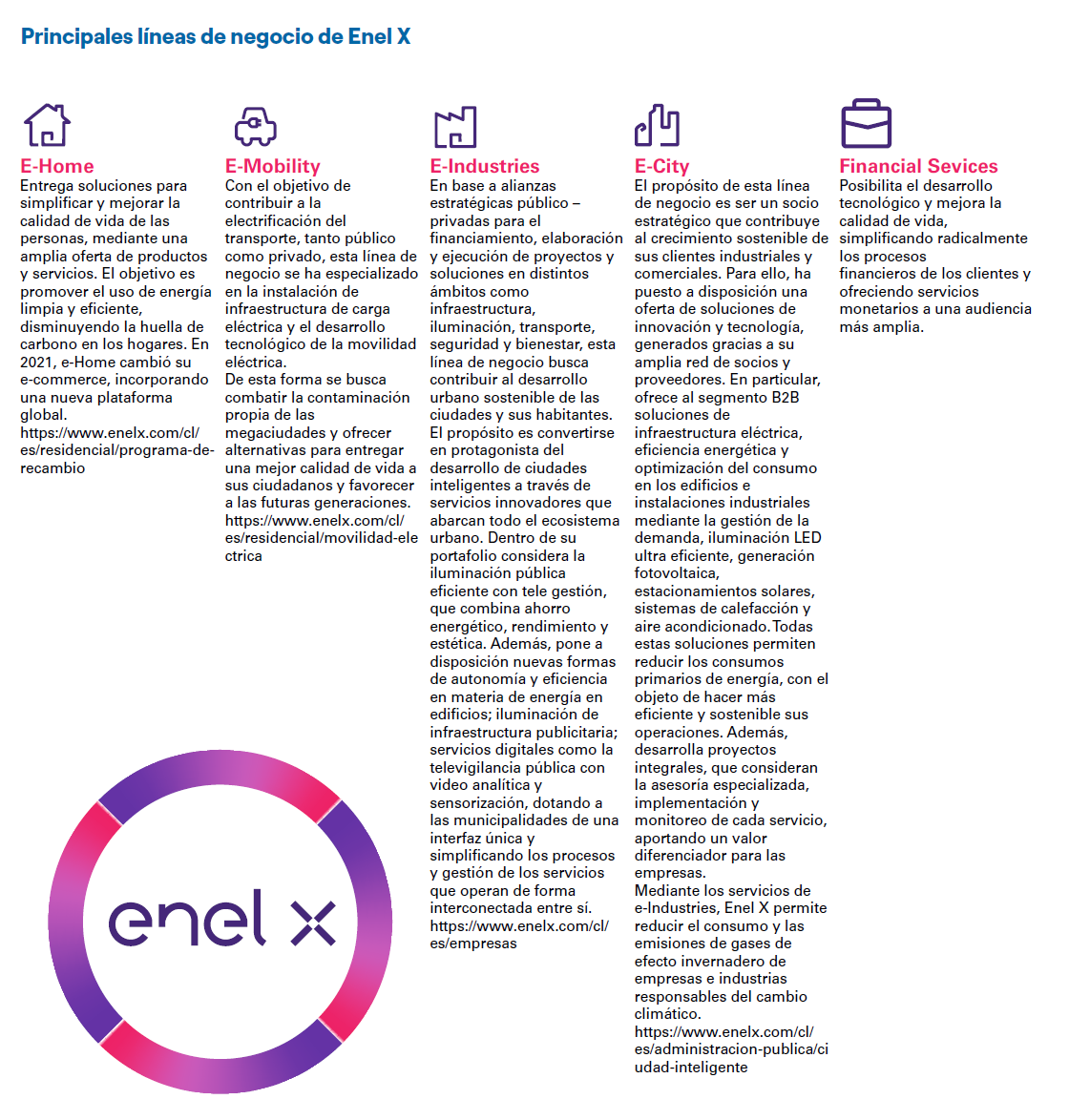 Enel X busca liderar la energía eléctrica para nuevos usos, mediante productos y soluciones energéticas basadas en la innovación y sostenibilidad para avanzar en la electrificación del consumo y lograr ciudades más sostenibles y menos contaminadas.