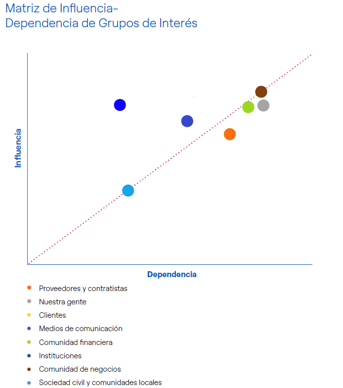 Enel Américas actualiza anualmente el mapa de grupos de interés de acuerdo con 2 variables: